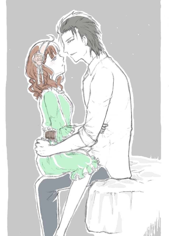 更新完了? DxP 2018年07月16日 拍手ありがとうございます!+++更新というのはリオットさんが実は思ってた以上に相当熱くアニちゃんに片想いしていたというイメージの更新のことです。そう思って色々振り返ってみると、ドラマCDでも「この想いは知られてはならぬ」みたいなこと言ってたのも想像以上に根深い(表現…)ものだったんだなーとか思えたり。あと本編6章の「ないがしろにしてきたもの」、大きくざっくりとした意味で愛情とかそういうものかなーと捉えていたんだけど、もしかしてピンポイントで「恋愛」とかそのへんを指していたのかも…と思ったり。もしそうだったらさー、で、それを「今更求めるなどおこがましい」って言うってことはさー、リオットがそういう感情を抱かないようにしていたor抱いても無視してきたっていうのに加えて、他者からそういう感情を向けられたことがあって、でも自分はそれにちゃんと向き合わなかった、なんてニュアンスに取れるなーなんて考えてしまって。そんな描写はないから完全に妄想なんだけど、そうだとしたら…リオットさんつよすぎる(?)最後に落描き投下。歳の差男女のこの構図大好物なんです。リオアニは体格差もあるからなおよいです!