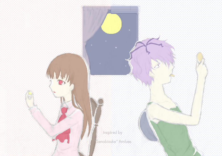 気を抜くと Ib 2013年04月20日 すぐ前の記事から2週間以上経ってしまいますね。更新しないで何をしていたのかと言えば、あちこち趣味に手を出しつつもだいたいIb充してました。特にギャリイヴ。間が空いたとはいえここのところ感想文ばかりだったので、久々に落描きを上げてみる。 とある歌から連想して描いたギャリイヴ。イヴちゃんが持ってるのはキャンディ、ギャリーさんはビスケットです。言わなきゃわからないクオリティ。あらゆる意味で離れていても同じ月の下にいるよ、みたいな。そういう歌ではないのですが(笑)。余談ですが、最近寒さがぶり返してきて不機嫌だったけれど冬ギャリイヴが寂しくなって皆のところに戻ってきちゃった妄想でちょっと幸せになりました。我ながらおめでたい頭してるね!