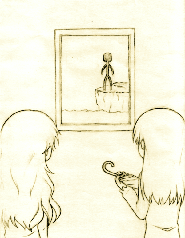 \どや!/ Ib 2012年12月28日 『釣り人』が好きです。最初は誰もいないけれどそのタイトルからいつかその人が絵に現れることを予感するワクワク感や、ついに現れたときの「キター!!」という興奮や、『釣り針』と連動して傘を釣り上げる一連の動きや、その仕掛けを解く時のギャリーとの連係プレイや、釣り上げた後もイヴとメアリーを見守っていてくれる所が好きです。そんなわけで一枚描いておかねばと思ったのですが、気づけばメアリー初掲載がこれっていう…それはいかん!とちゃんと正面向いたメアリーwithイヴ絵も描いてみました。いつか色を塗りたいとか言って結局塗らないままっていう過去があるので何も言わないでおく。もう終わってしまいましたが、公式サイトのサンタイヴちゃんがすっごくかわいかったですね。イヴちゃんはなんでそんなにかわいいの…?